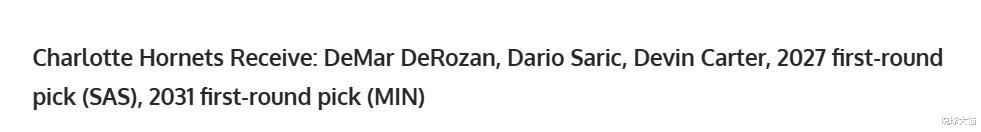 Subsequently, the US media FW brewed a related deal: specifically package DeRozan + Saric + Carter + 2027 first round and 2031 first round for the Kings, respectively from the Spurs and Timberwolves.