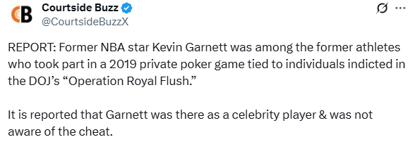 Follow-up to the NBA gambling scandal! It is revealed that Garnett participated in illegal poker games: did not know about the cheating + left early