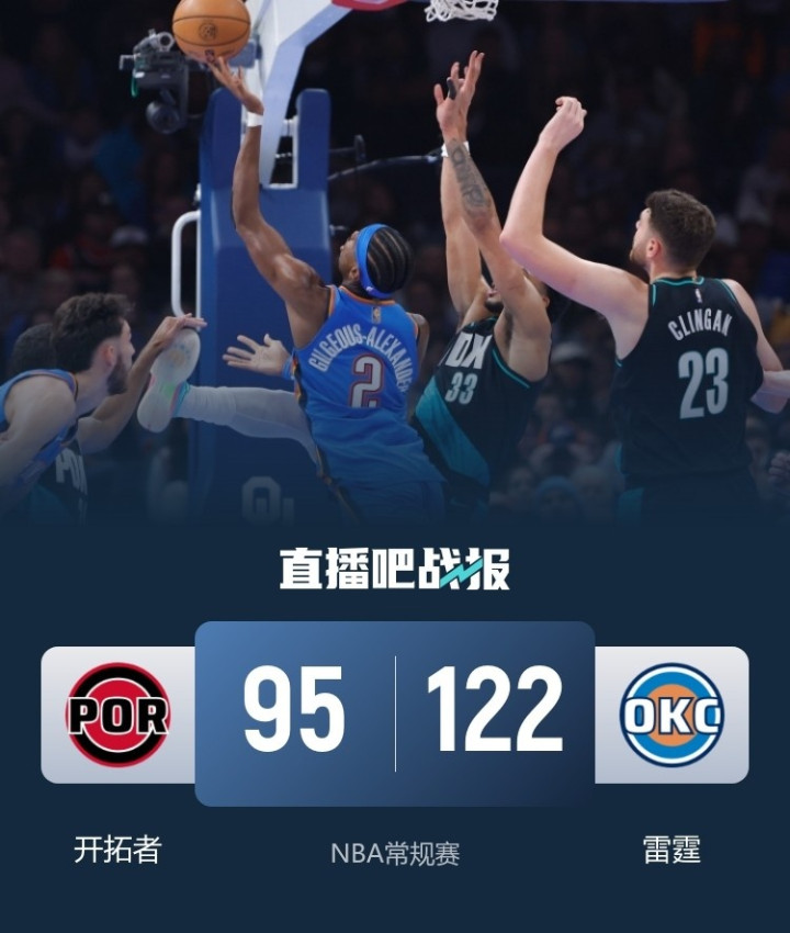 [Post-game post] Today in the NBA regular season, the Trail Blazers lost to the Thunder 95-122 away from home.