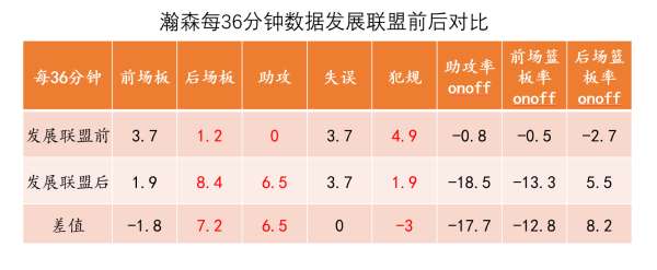 In addition to the number of personal shots, Hexion's more obvious improvement is reflected in the control of the backcourt and assists. As shown in the table above, Hexion grabbed 8.4 backcourt boards every 36 minutes after returning from the G League, which was completely opposite to his performance at the beginning of the season. Moreover, when he is on the court, the team's overall backcourt rebound rate can also increase by 5.5%, which shows that his personal control of rebounds is consistent with his influence on rebounds. We have already observed this in his two Development League games - against the background of significantly improved confrontation ability, the current Hexion has basically got rid of the previous habit of only blocking backcourt rebounds and not grabbing them. Now he is actively competing for rebounds, so the progress is also visible to the naked eye.