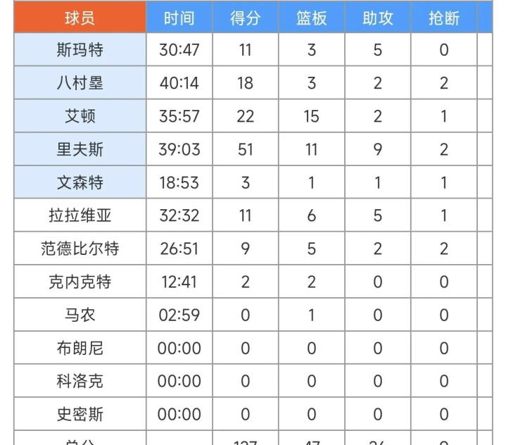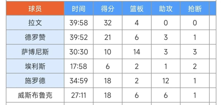 In terms of statistics, Rivers scored 51+11+9, Ayton 22+15, Rui Hachimura 18 points, LaVine 32 points, Schroeder 18+12, and Westbrook 18+6+6.