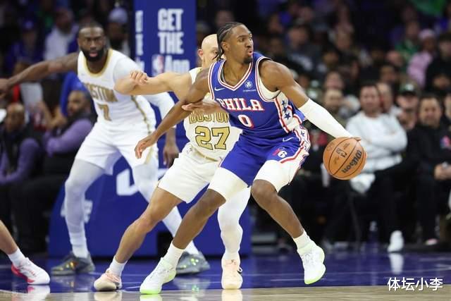This time the 76ers were able to withstand the Celtics' counterattack, thanks to the super wonder player Edwards on the bench, who hit 3 consecutive three-pointers in the final quarter to ignite the audience. This time he played 26 minutes, made 8 of 9 shots, 5 of 6 three-pointers, and scored a team-high 22 points. If it weren't for him, the two stars in the team's backcourt would have taken the blame this time. Maxey scored 21 points on 5 of 17 shots, while Edgecombe only scored 6 points on 2 of 11 shots.