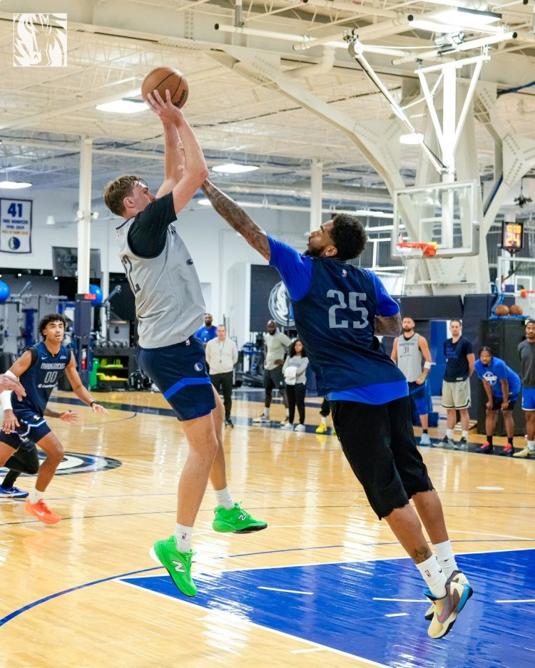 October 8th Today, the Mavericks officially released team training photos. Among them, Flagg and Anthony Davis were fiercely blocked.