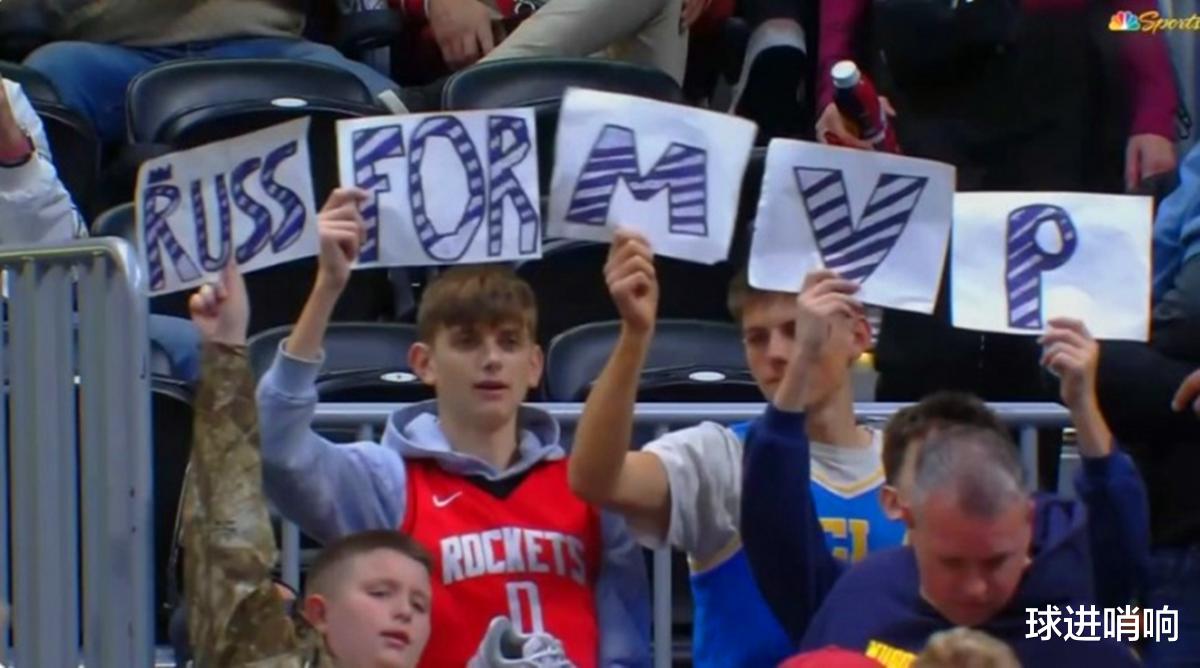 Facing Westbrook, who was dreaming of returning to his peak in the final quarter of the game, the young fans wearing the No. 0 jersey from Westbrook's Rockets era also held up a Westbrook MVP sign.