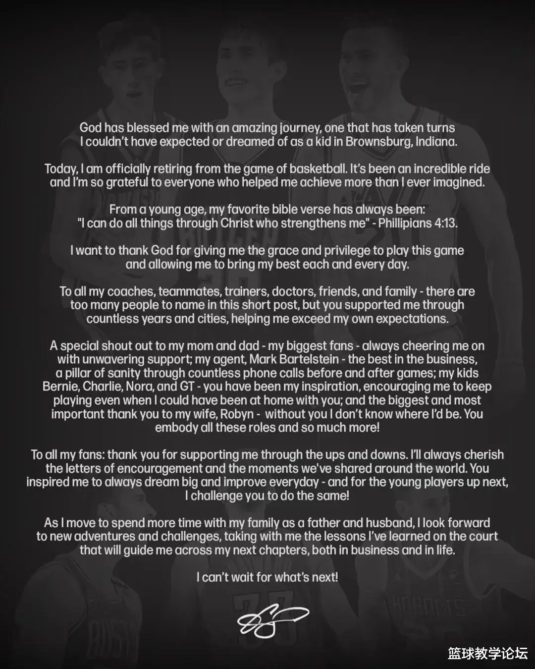 On October 16, Butler University officially announced that Gordon Hayward, who has retired, has returned to his alma mater as a basketball consultant for the Butler school team. Hayward said: "When I was playing at Butler University, many people helped me on and off the court. Now I hope to help young players in the same way."