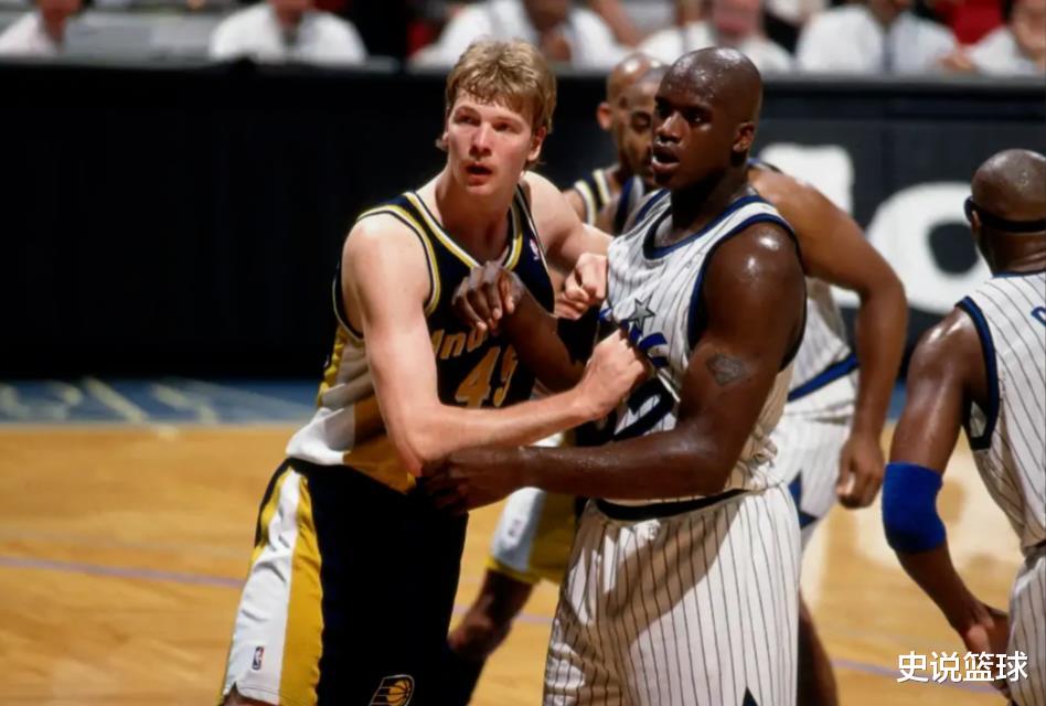 In the NBA in the 1990s, when talking about strong white centers, fans might think of names like Sabonis, Divac, and Muresan. But Rick Schmitz was the European-style technical center who truly performed at a star level in the 1990s and was selected as an All-Star. The 2.24-meter-tall Pacers starting center is known for his skillful mid-range shooting, post-up play and hook skills. Schmitz spent his entire career with the Pacers, averaging 14.8 points, 6.1 rebounds and 1.4 assists per game. In the 1995/96 season, he reached his peak performance, averaging 18.5 points, 6.9 rebounds and 1.7 assists per game. He was selected as an All-Star in the 1997/98 season, which also proved that he was an indispensable second-in-command for the Pacers at that time. In Reggie Miller's journey to lead the Pacers to become a powerhouse in the Eastern Conference, Schmitz's stable output and inside threat played a crucial role. He may not be the most dazzling center, but he is definitely one of the team's most reliable pillars.