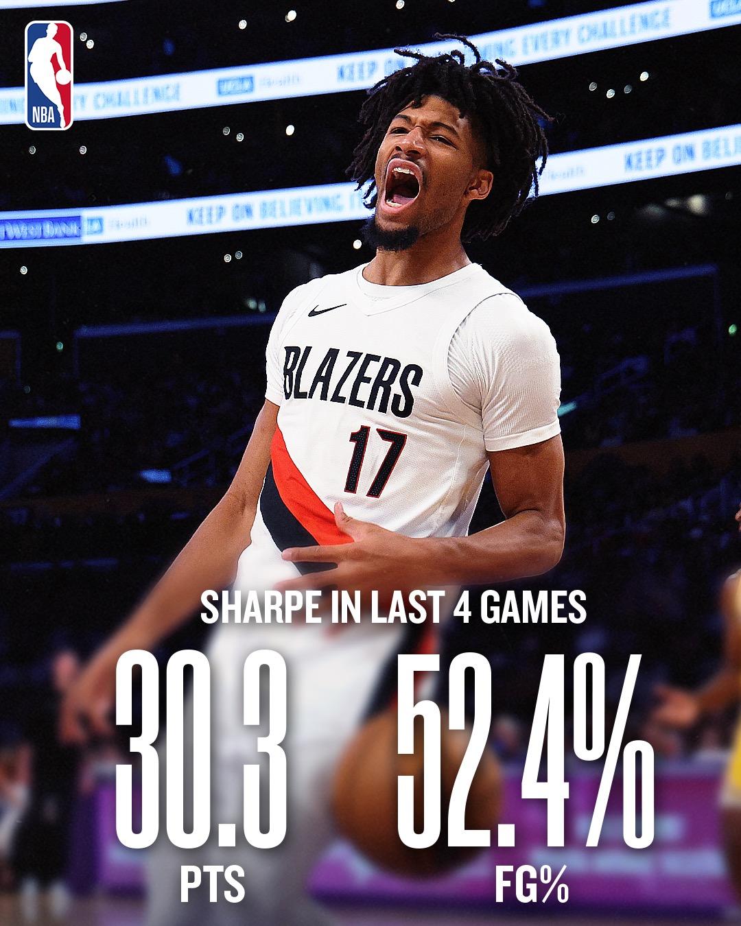 moreTrail Blazers: Sharp has reached a new high in scoring in the past 4 games