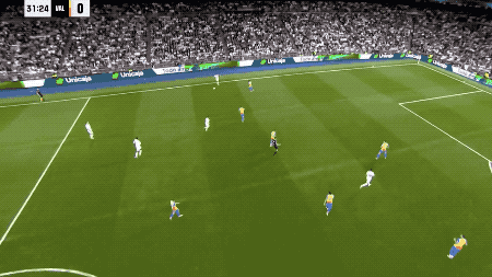 At halftime, Real Madrid already led 3-0. Throughout the first half, Real Madrid completed a total of 13 shots, 9 of which were on target, while Valencia had only 1 shot.