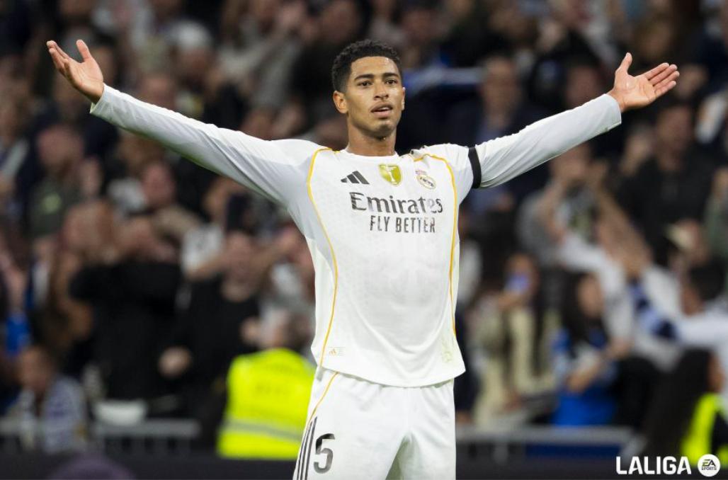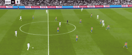 Real Madrid's offensive continued unabated. In the 43rd minute, Bellingham dribbled horizontally and then suddenly shot a cold arrow, and the ball went straight into the blind corner.