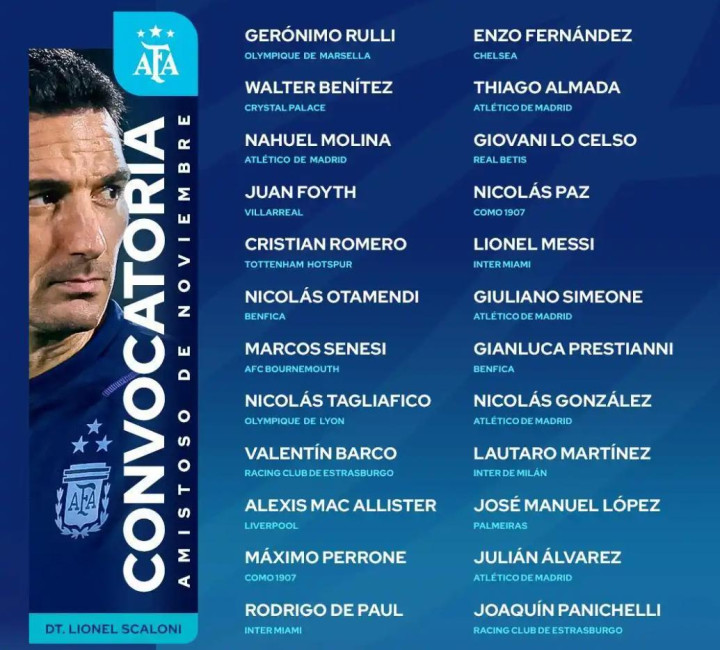Early this morning, the Argentina team officially announced this month’s national team roster, which is still led by Messi, with Alvarez, Lautaro, De Paul, Lo Celso, and Simeone Jr. included. Atletico Madrid has four people selected for the national team, making it the club with the largest number of people selected for the national team. Simeone's contribution to the national team is seen and remembered by Scaloni and Messi.