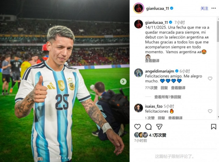 Encouragement from seniors! Prestani’s social media commemorated Argentina’s debut, Di Maria left a message of congratulations