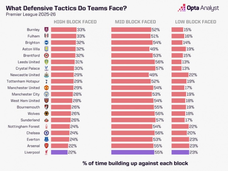 Liverpool s average ball possession rate in the Premier League is 60.7%, and they face medium or low defenses 78% of the time.
