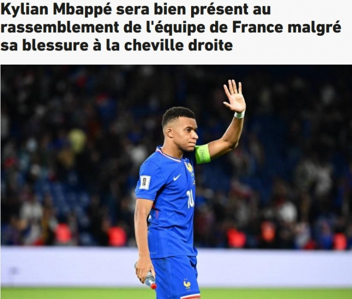 October 5th According to French media "Team News", although Real Madrid suffered an ankle injury in this round of La Liga 3-1 Huang Qian's game, Mbappe is expected to still report to the French national team this period.