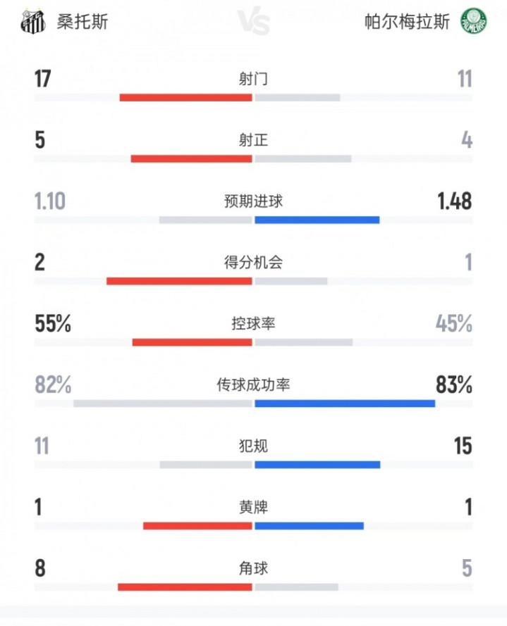 On November 16, in the 13th round of the Brazilian League rematch, Santos defeated Palmeiras 1-0 at home.