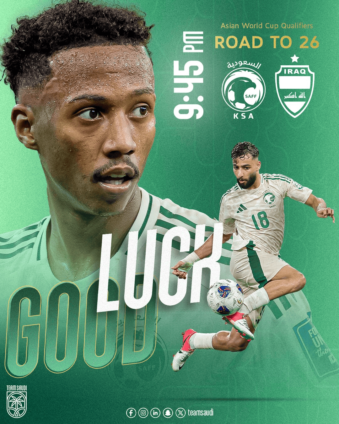 Moon Sports > Football > Saudi Arabia vs Iraq starting line-up: Brykan PK Yusuf-Amin, Dawa Sari played