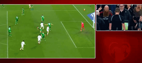 Before the referee checked VAR, Ronaldo made a crying gesture. When he left the field, the Irish fans in the stands collectively made this gesture in response.