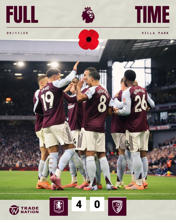 In the 11th round of the Premier League on November 10, Aston Villa defeated Bournemouth 4-0.